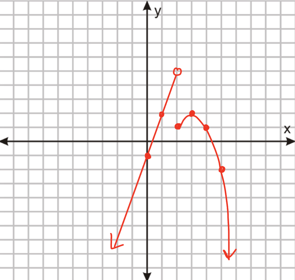 f(x)={(3x-1, ; ,x<2),(-(x-3)^2+2, ; , xgeq2):}