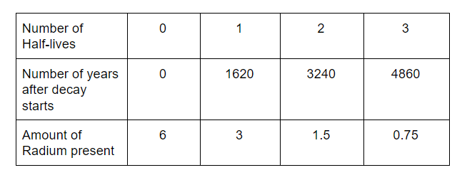 The half-life of Radium is 1620 years.