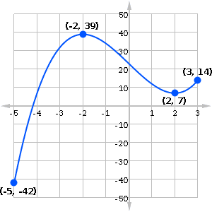 Absolute maximum at y = 39 ; absolute minimum at y = -42