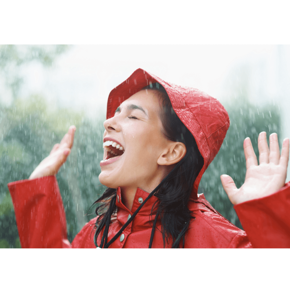The woman in the picture is wet because she (play) ___has been playing_ in the rain.