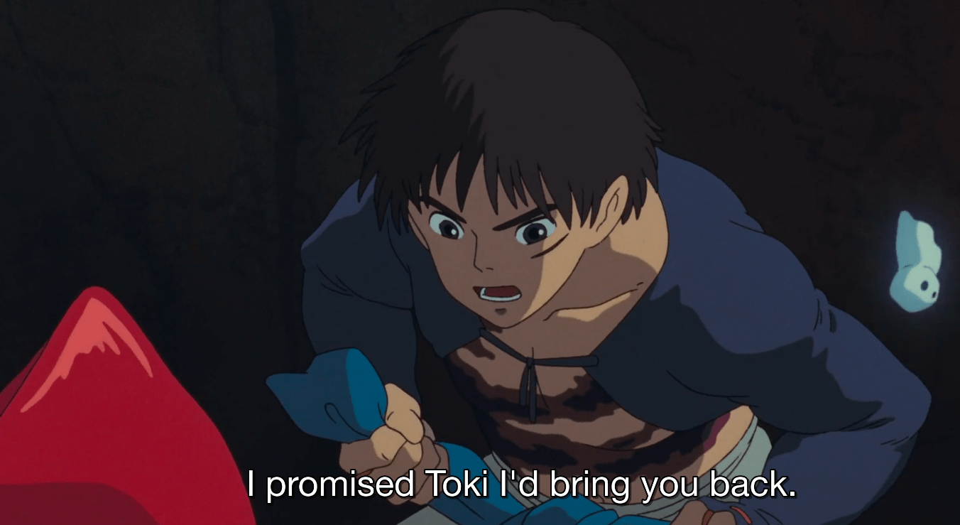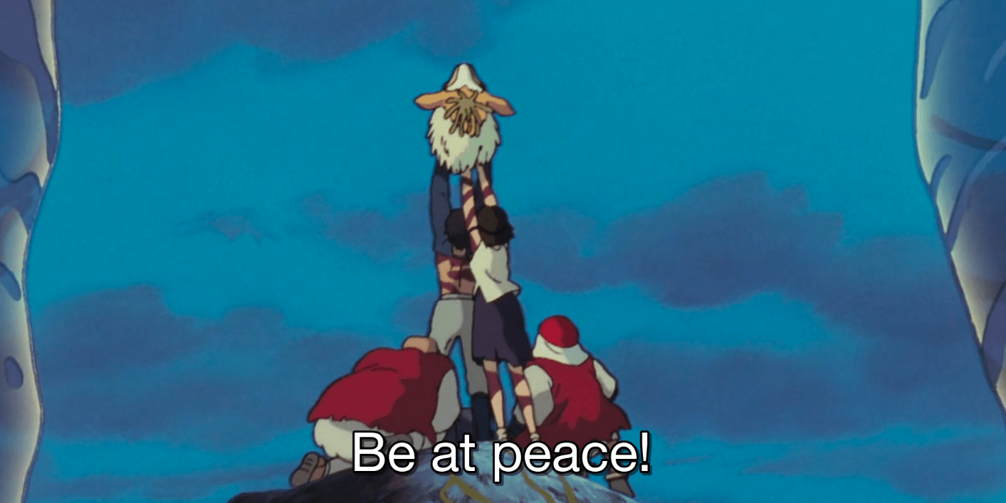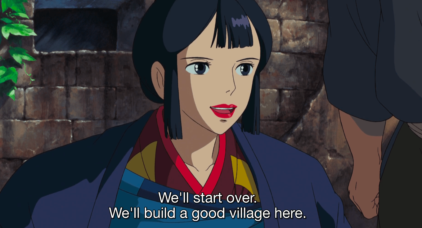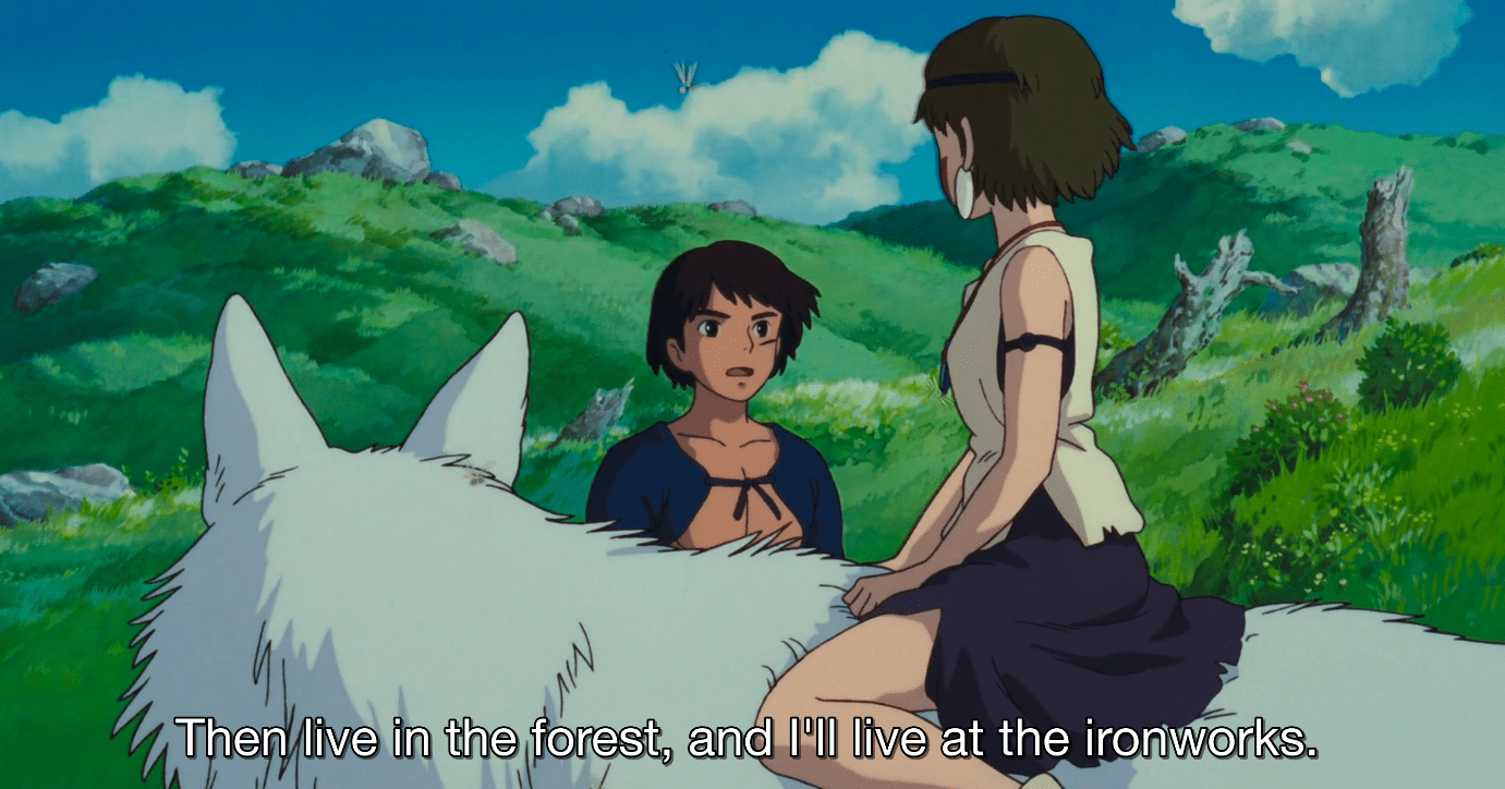 She laughs when Ashitaka says, "I don't know, but together we can live."