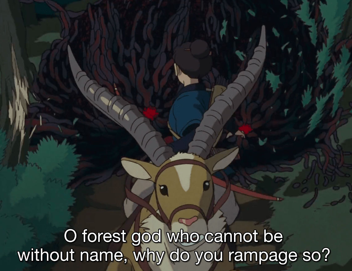 The worldview of both Princess Mononoke and We Will Not Be Saved in which spirits are alive everywhere in the fores.
