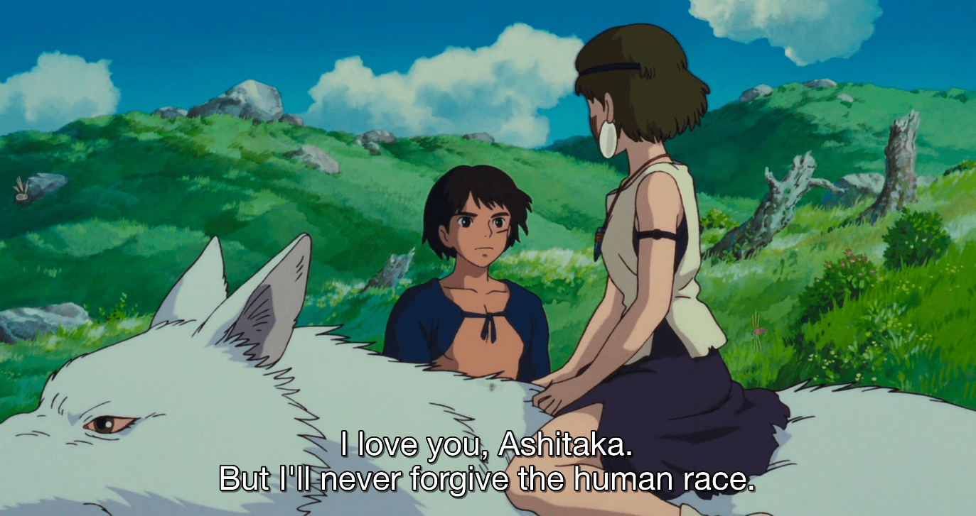What is Ashitaka helping Lady Eboshi, even though she was responsible for the curse on him, and Nemonte willing to marry a cowori and write a book with one in order to save the forest.