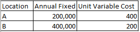 What is the Break Even Model for Location A: