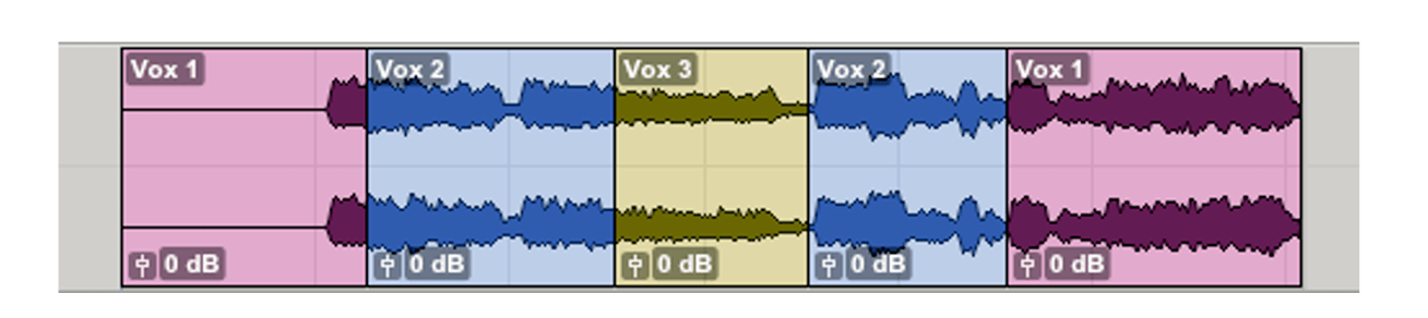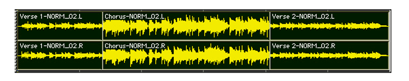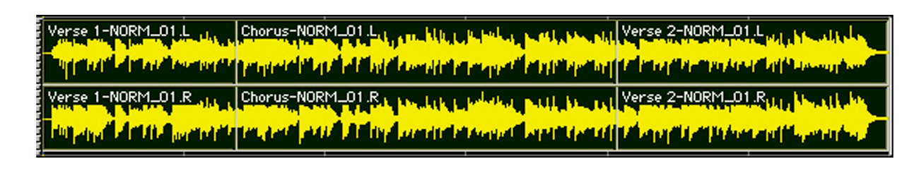This image shows clips after normalizing with the "Clip by Clip" option (vs Entire Selection option)