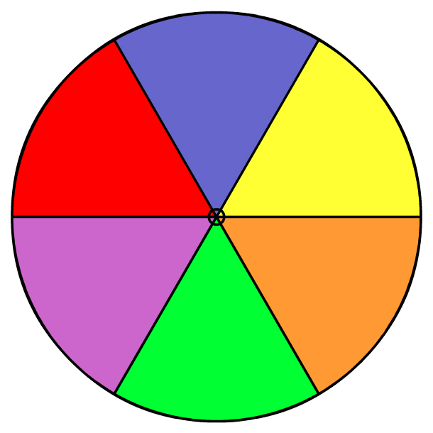 A spinner with 6 sections is shown. In an experiment, Joe spun the spinner 50 times. He landed on: