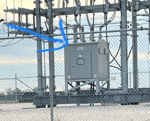 This is the structure below is responsible for carrying voltage into the substation; it is also used to open and close circuits. They can be operated manually to perform maintenance or will automatically trip if a short circuit occurs in order to protect equipment from damage: