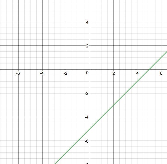 Here is the graph y=x. Translate it down 5 units. What is the y-intercept of your translated line? What is the slope?