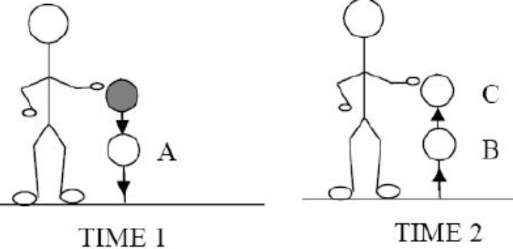 Cuando la pelota está en camino de regreso para arriba a través del punto B, ¿qué fuerza(s) están actuando sobre ella?