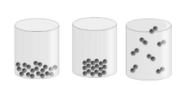 What must happen to the particles in the middle beaker for the substance to change into the state shown in the beaker on the left?