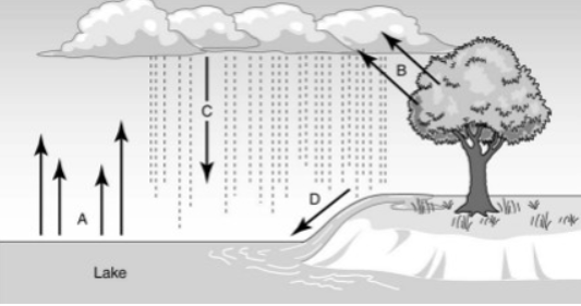 A-evaporation, B-transpiration, C-precipitation, D-runoff