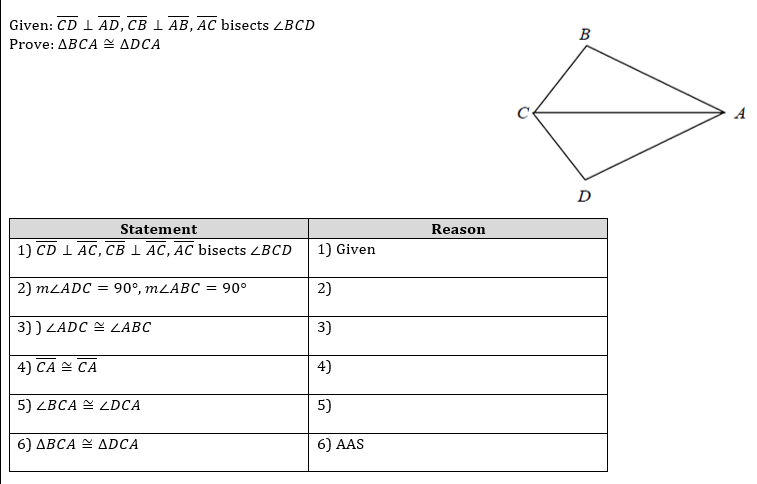 Fill in the correct reasons for the proof below: