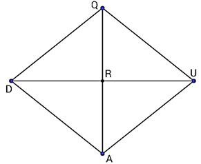 In rhombus QUAD below, <QDR=6x+13 and <DQR=x+35. Classify triangle QRU