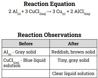 CuCl2 must be the limiting reactant as there is no blue liquid remaining after the reaction but there is gray solid (Al) remaining after.