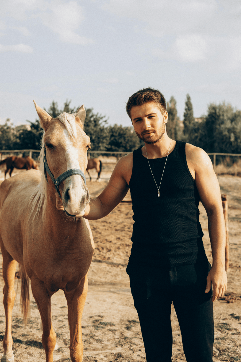 He had a ton of black ink (more than one tattoo) on his muscular arm.