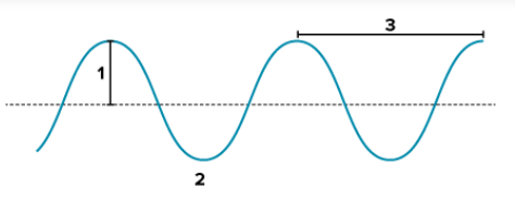 1. amplitude     2. trough     3. wavelength