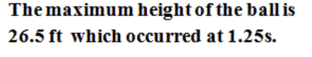 the Maximum height of the ball is 6.5 ft which occurred at 1.25s.