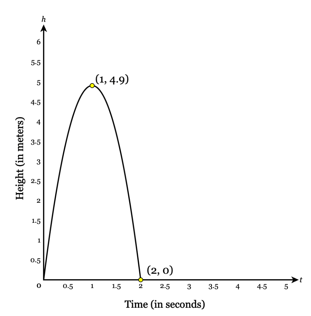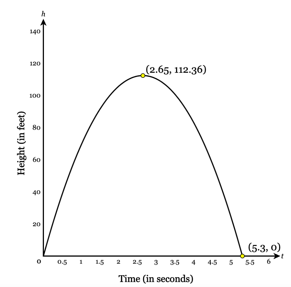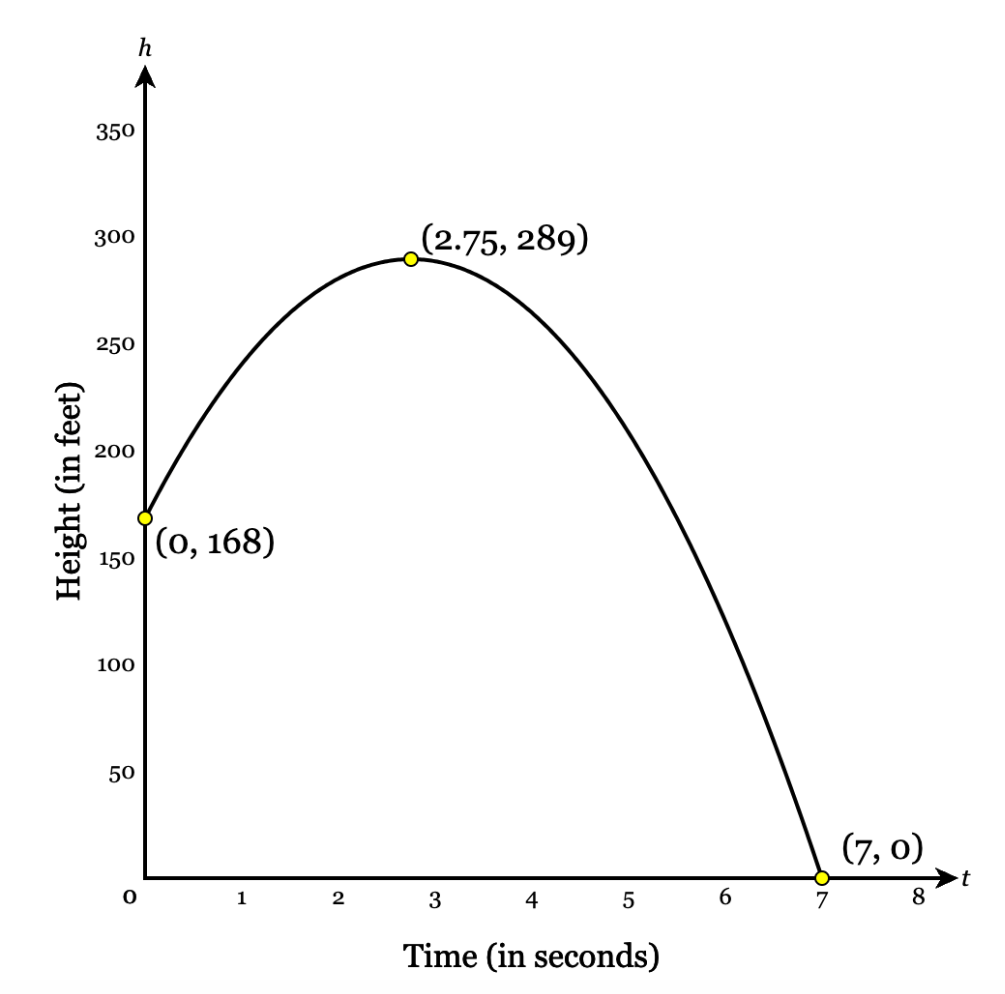 Jacob launches a toy rocket from a platform. The graph below shows the path of the rocket including height, h, in feet and t, for seconds.