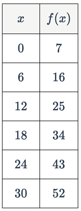 Given the function defined in the table below, find the average rate of change, in simplest form, of the function over the intervale