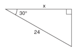 In the right triangle shown in the diagram below, what is the value of x to the nearest whole number?