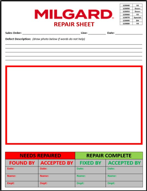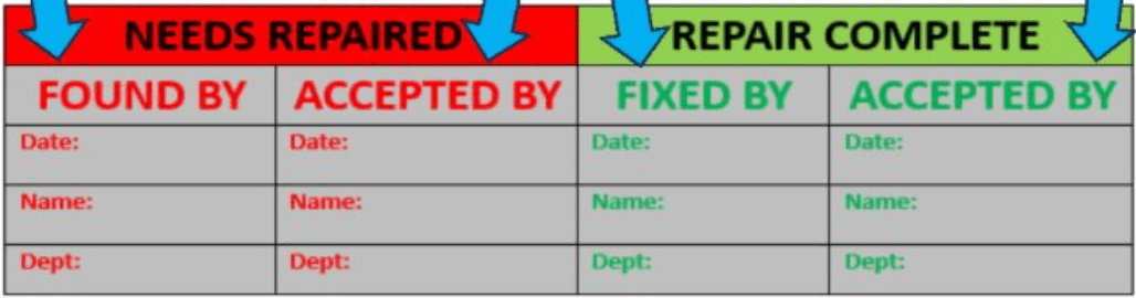 ¿Cuántas firmas se necesitan en una hoja de reparación para que esté completa?