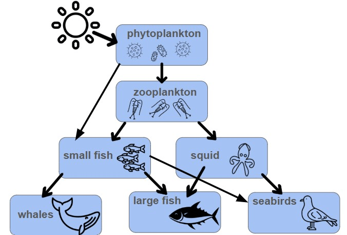 When an oil spill blocks sunlight, this group loses its main food source because phytoplankton cannot make food. (Hint: 2 groups)