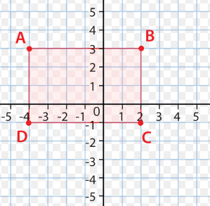 Write the coordinates of the vertices of rectangle ABCD after a translation of 3 units down: