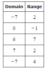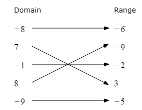 List all items in the domain of the relation. Then list all items in the range of the relation.
