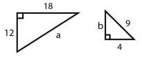 The two triangles below have been dilated by a scale factor. What is the missing length of each triangle?