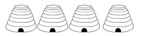 Aiden counted 24 bees swarming around a tree. He saw 4 bee hives.