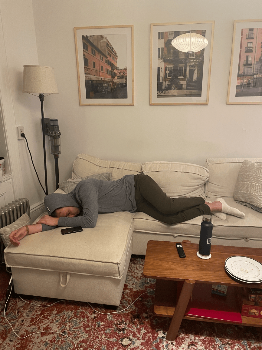 Falling asleep on the couch after going out