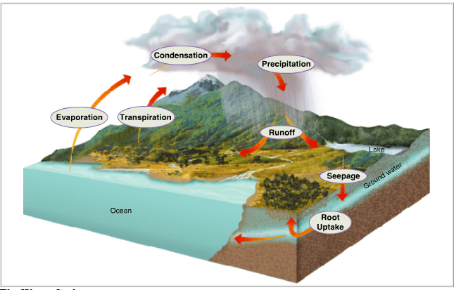 process in which water enters the atmosphere by evaporating from the leaves of plants.