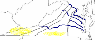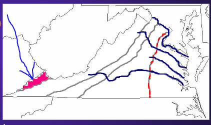 Each major river begins in one of the regions of Virginia. They start there and flow to the east, where they empty into the Chesapeake Bay. Where do they begin?