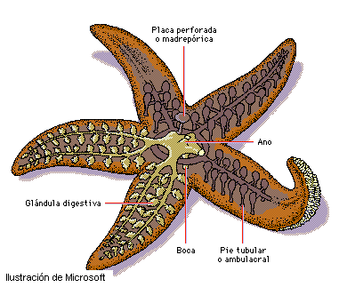 Posúen o aparello ambulacral, formado por unha serie de tubos internos cheos de auga que terminan en finos tubos, con ventosas ao final, denominados pés ambulacrais. Serve para desprazarse.