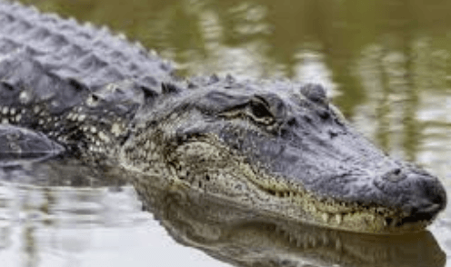 Similar in appearance to a crocodile but this large reptile has a wide, round, u-shaped snout.