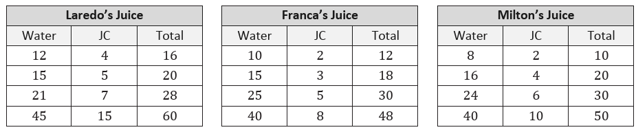 Whose juice has the greatest water-to-juice concentrate ratio?