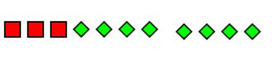 Use ratio language to describe the relationship between the red squares and green diamonds.