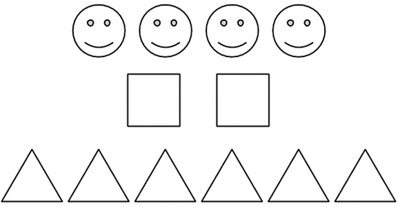 C. The ratio of smiley faces to triangles is 4 to 2.