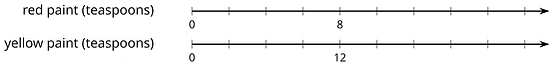 A mixture of orange paint contains 8 teaspoons of red paint and 12 teaspoons of yellow paint. To make the same shade of orange paint using 18 teaspoons of red paint, how much yellow paint would you need? Use the double number line diagram to help if needed.