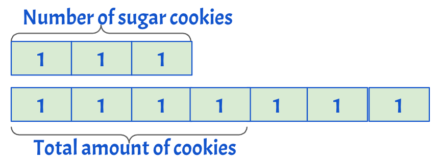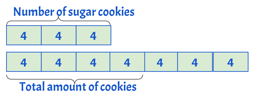 Look at the bar diagram. How many total cookies would there be if there were 12 sugar cookies?