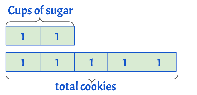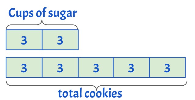 Look at the bar diagram. How many total cookies would there be if there were 6 cups of sugar?