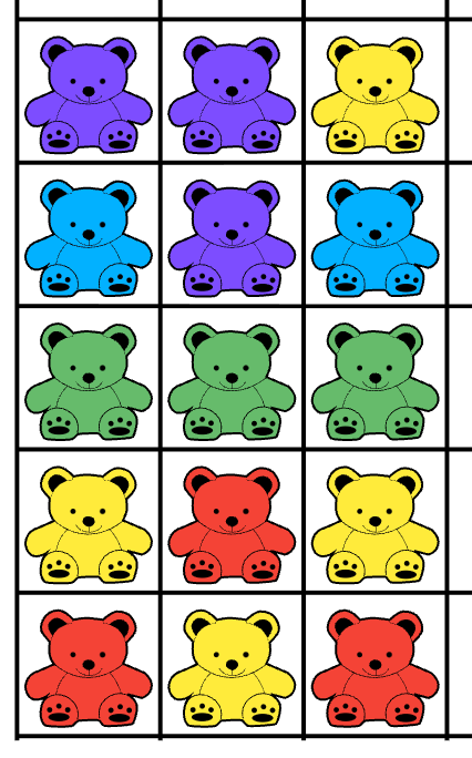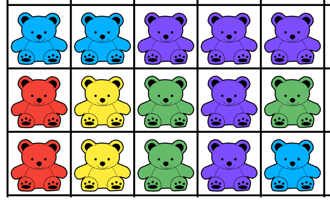 Look at the ratio of purple bears to total bears. If there were 60 total bears, how many would be purple?