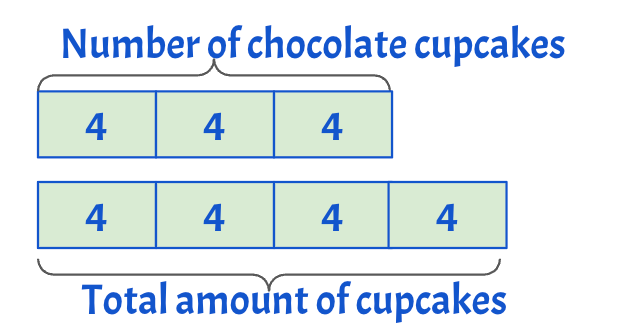 Look at the bar diagram. If there are twelve chocolate cupcakes, how many total cupcakes would there be?