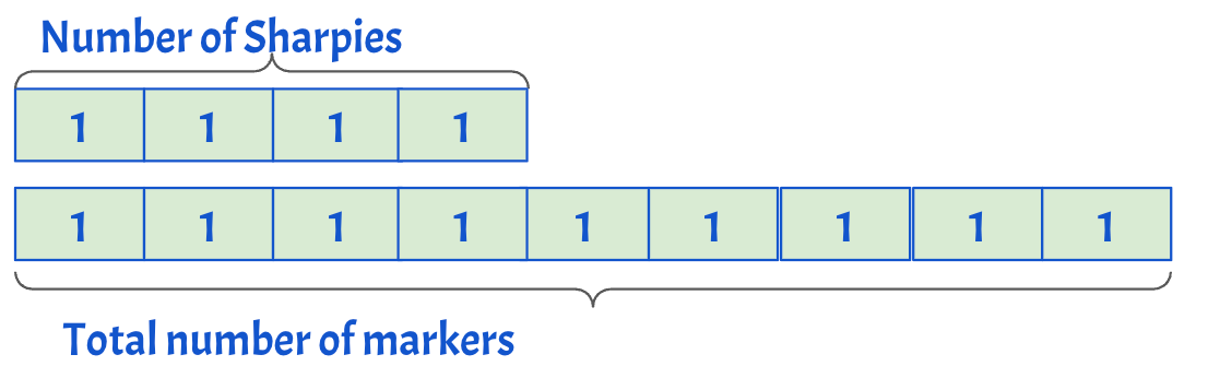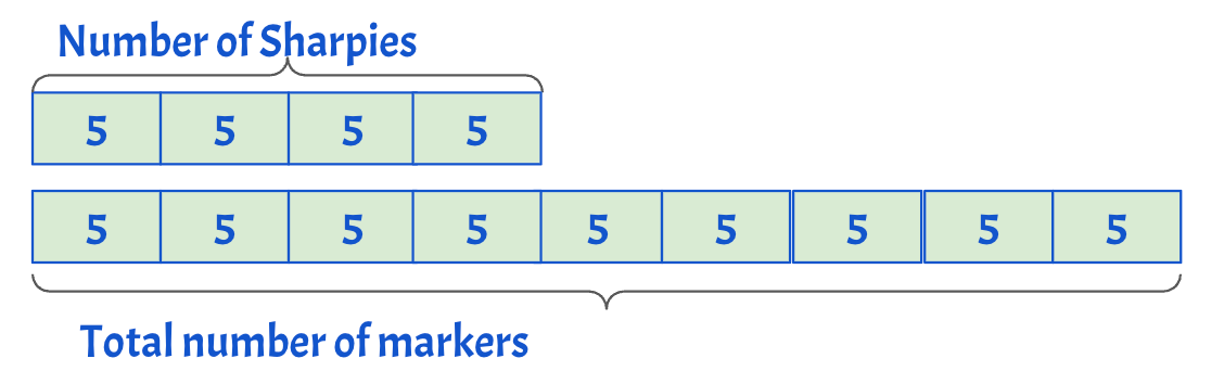Look at the bar diagram. How many total markers would there be if there were 20 Sharpies?