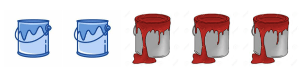 Write a ratio statement to represent the ratio of red to blue paint.