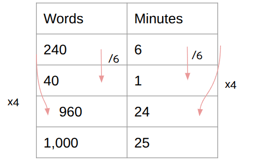What is 1,000 words? (Unit rate: 40 words per minute × 25 minutes)