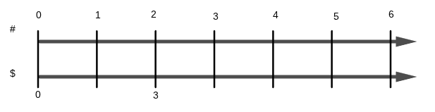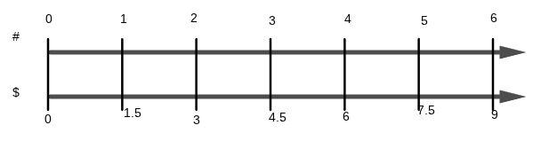 If 2 pounds of apples cost $3, and you create a double number line, this is what 6 pounds would cost.