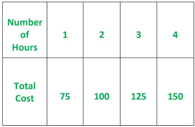 A plumber charges $50 to come to your house and $25 an hour to work.