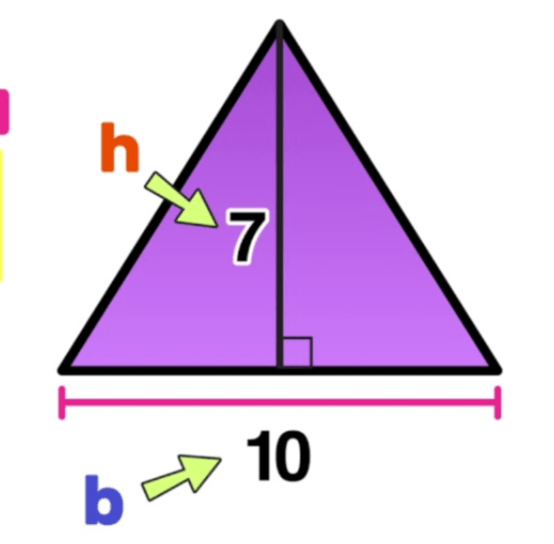 What is the area of a triangle with a base of 10m and a height of 7m?