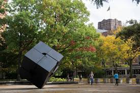 This sculpture on U of M's campus, nicknamed "The Cube," is made of this material.